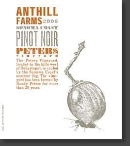 Then, true to fashion, Dave poured two bonus tastes: the 2006 Cavallotto Dolcetto d’Alba from the Piedmont in Italy, and the 2006 Anthill Farm “Peters Vineyard” pinot noir.  The Dolcetto was very nice–smooth, a bit tannic.  Nice blueberry, a bit gamey–it threw a fair amount of sediment in my glass (though mine was the last glass poured).  The Anthill Farm was very, very light: almost clear, with the classic taste of cherry.  Very focused for such a clear-looking wine!
