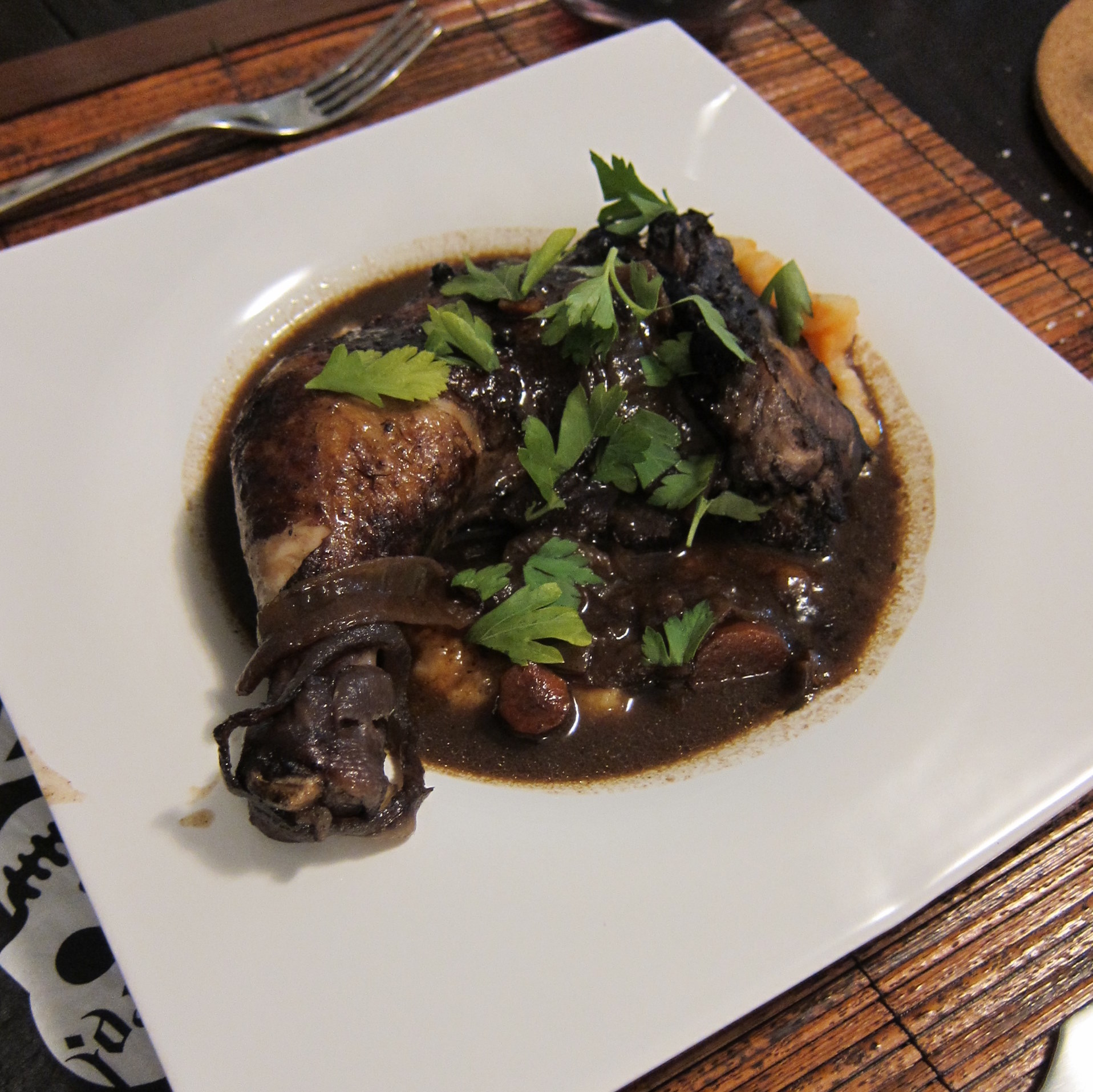 But the mushroom paté turned out surprisingly well; actually, all the food turned out extremely well. The coq au vin, made with love and care by Meredith, was supremely flavorful and tender, with some caramelized onion and carrot that hit me like sweet/umami bombs. The greens were a fine balance between bitter and buttery, and the quince tarte tatin was like something out of heaven.