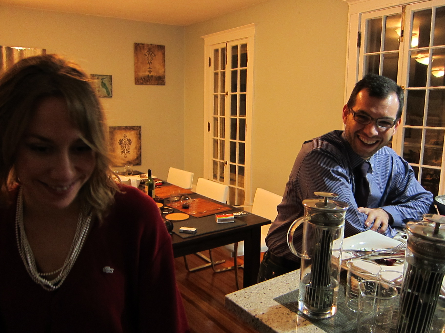 Kate and Rahul, who are esteemed members of both organizations, thus found themselves with about two cases of wine. They invited us over for dinner where they would provide the wine; Meredith, a trained chef, agreed to coordinate a dinner to go with the wine.