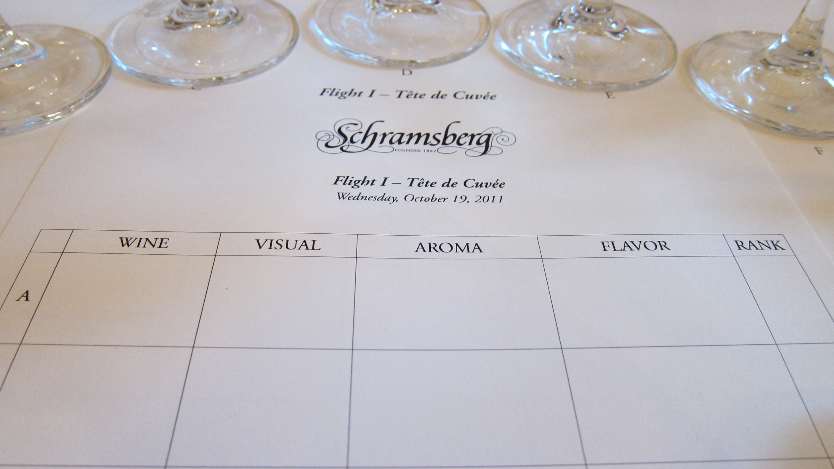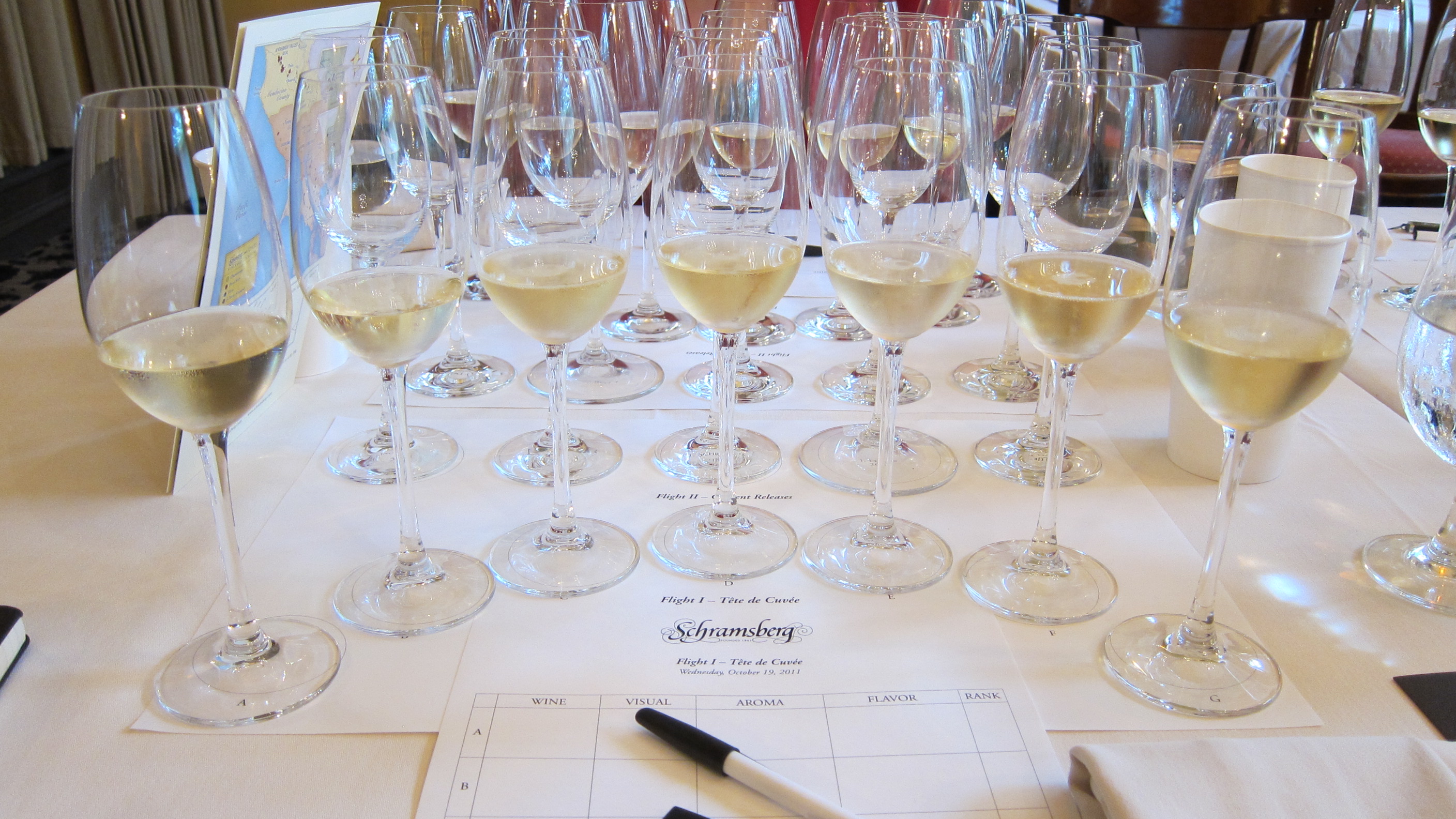 Last week I was fortunate enough to be invited to a trade tasting of the sparkling wines of Schramsberg Vineyards, a venerable California sparkling wine institution located in Napa Valley, at Marcel’s in DC. I had had their wines once or twice before, but was never in a condition to remember too much about them. With this tasting I was in luck, however, because not only would I try a number of Schramsberg’s wines but would also participate in a blind tasting of Schramsberg wines and the finest French têtes de cuvée (prestige cuvée) wines.