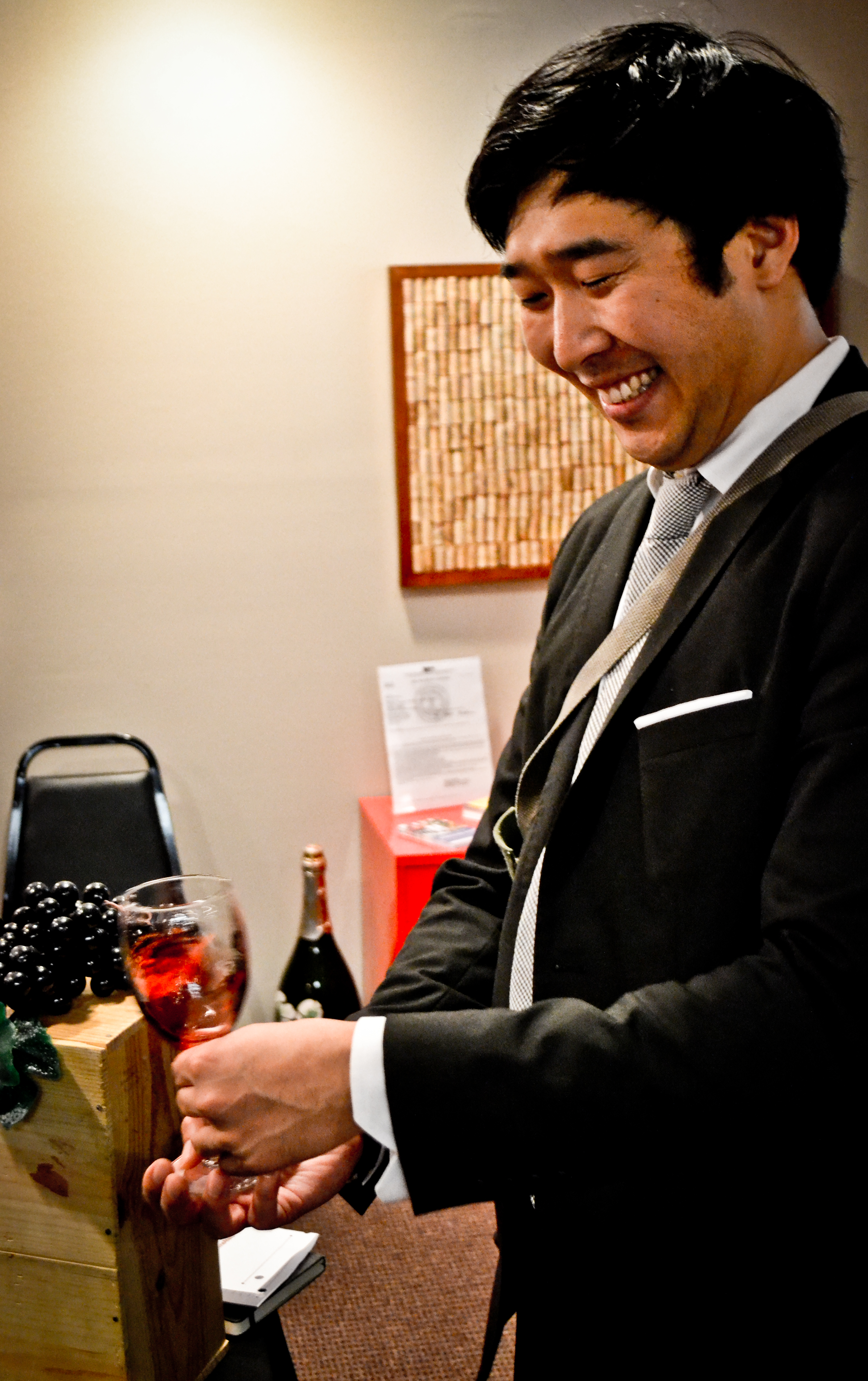 My favorite part of the evening was yet to come.  Alex Evans, one of the Academy’s staff members, presided over the blind tasting with considerable energy and aplomb.  We had to guess whether the wine we were drinking was from Virginia or from anywhere else in the world.  The three whites were Viognier, and the three reds were Cabernet Franc.